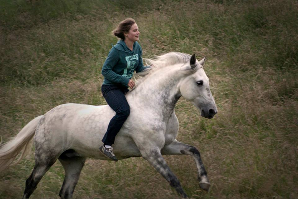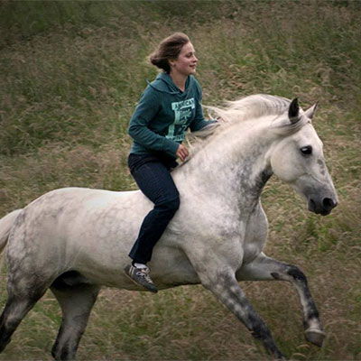 Aurélie a suivi Claire dans le travail des chevaux et les stages pendant 2 ans dès qu’elle en avait la possibilité. Elle travaille avec son poney, Cyrano.