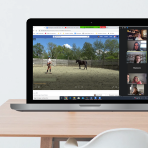 – Claire vous propose un rendez-vous audiovisuel avec un logiciel (idéalement Zoom) muni d’un partage d’écran afin de visualiser avec vous une vidéo du travail avec votre cheval.