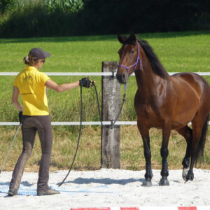 Ce stage est destiné aux cavaliers souhaitant préparer leurs chevaux aux sorties extérieures ou aux personnes souhaitant habituer leur jeune cheval à différents éléments généralement craints par la plupart des chevaux. Il est ouvert à toute personne ayant suivi une initiation à l’équitation comportementale (sous forme de stage ou de cours).